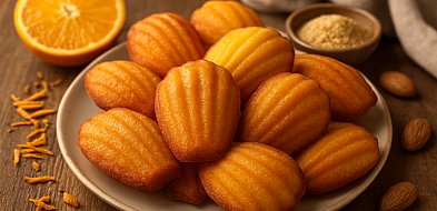 Wyszukane magdalenki pomarańczowo-migdałowe, małe złote muszelki pełne cytrusowej magii