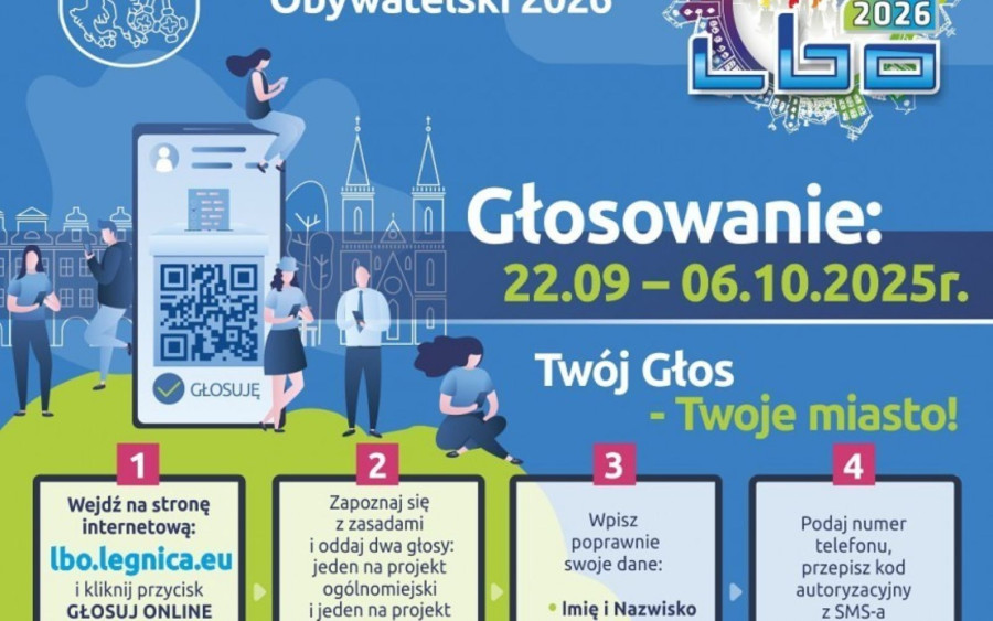 Głosować może każdy legniczanin, niezależnie od wieku. Wystarczy wejść na stronę lbo.legnica.eu, kliknąć przycisk „Głosuj online” lub odwiedzić punkt stacjonarny w Wydziale Aktywności Lokalnej i Promocji Miasta przy ul. Rynek 3. Każdy mieszkaniec może oddać dwa głosy, jeden na projekt ogólnomiejski i jeden na obszarowy.
