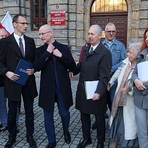 Podczas konferencji zwołanej w legnickim ratuszu głos zabrali przedstawiciele Ordo Iuris oraz radni Prawa i Sprawiedliwości. Jak podkreślali, decyzja prezydenta o usunięciu krzyża z sali sesyjnej była ich zdaniem „karygodna” i uderza w fundamenty wspólnoty samorządowej.