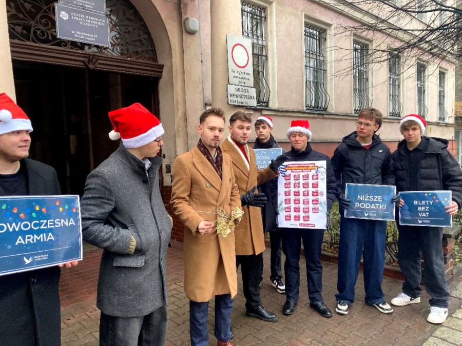 Ta plansza to dowód na to, że PO i PiS to dwie strony tej samej, zużytej monety. (...) My, jako Konfederacja, mówimy jasno: Nie chcemy waszych prezentów kupionych za nasze własne pieniądze! Nie chcemy waszych pustych obietnic! Chcemy prostych i niskich podatków. Chcemy państwa, które odczepi się od gospodarki. Mieliście zdjąć pętlę z szyi polskiego biznesu. (...) I co? I nic! Przedsiębiorca w Polsce to nadal dojona krowa, a urzędnik to wciąż pan i władca. Miał być »uśmiechnięty biznes«, a jest płacz nad zamykanymi firmami – mówił Kamil Gabriel Janic, prezes Okręgu Legnickiego Młodych dla Wolności.