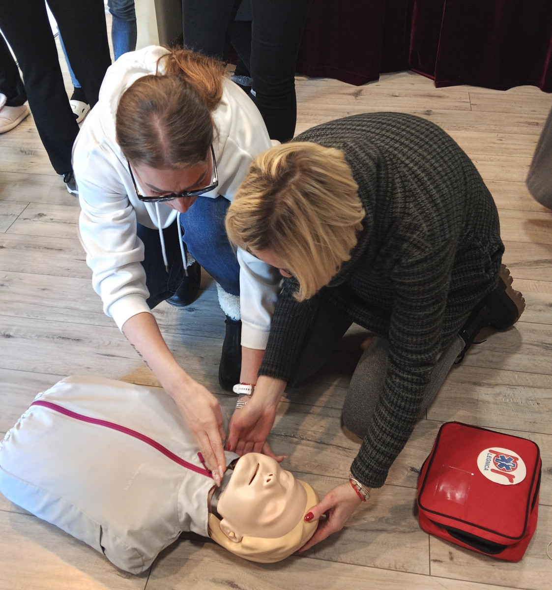 W Centrum Opiekuńczo-Wychowawczym Sióstr św. Elżbiety odbyło się szkolenie z zakresu pierwszej pomocy, w którym wzięło udział 13 osób. Zajęcia poprowadził Sebastian Kozioł, ratownik medyczny ze Szkoły Ratownictwa Pogotowia Ratunkowego w Legnicy. Uczestnicy uczyli się, jak zachować się w sytuacjach, gdy ktoś traci przytomność, przestaje oddychać albo potrzebuje natychmiastowej pomocy.