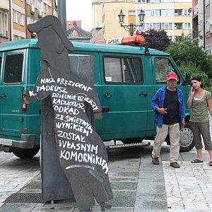 Takie wierszyki ku czci Tadeusza Krzakowskiego pojawiły się w piątek na legnickim Rynku. Legniczanie przechodzący przez centrum miasta mieli okazję zobaczyć ciekawą wystawę. Na kilku planszach pojawił się komentarz do konfliktu jaki od kilku dni obserwujemy na linii prezydent Legnicy – Teatr.  W satyrycznej formie autorzy wystawy zaprezentowali stosunek prezydenta do własnej instytucji kulturalnej.
