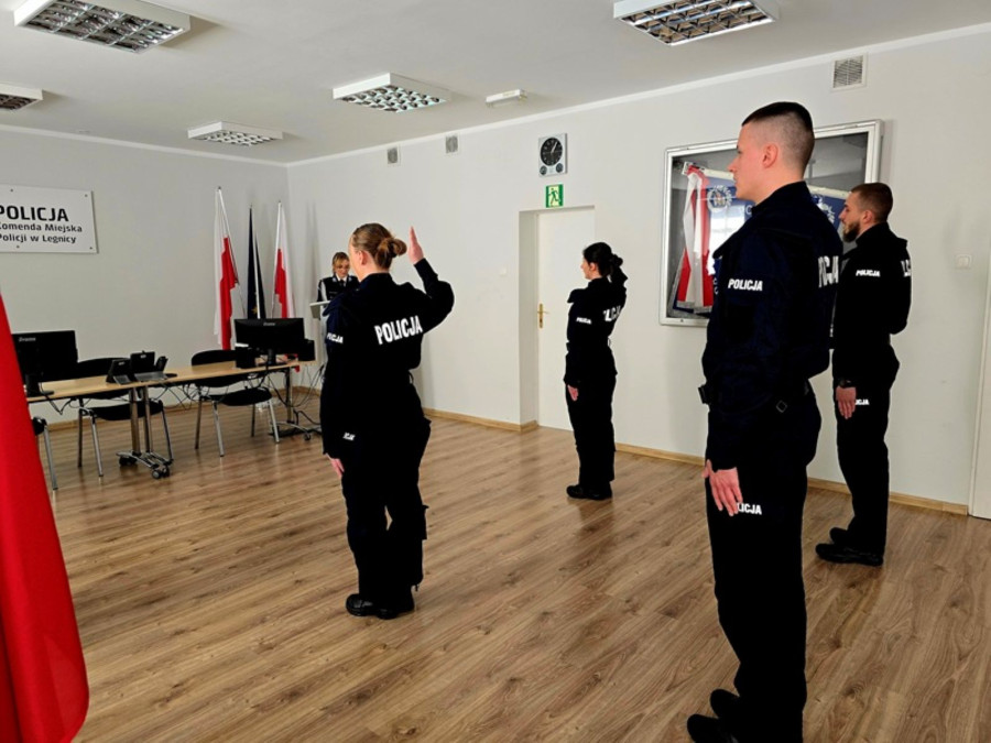 Czworo nowych policjantów zasiliło szeregi Komendy Miejskiej Policji. W siedzibie jednostki złożyli uroczyste ślubowanie, które przyjęła Komendant Miejski Policji insp. Anna Farmas-Czerwińska. Już za kilka dni rozpoczną półroczne szkolenie, po którym wrócą do służby na ulicach miasta i powiatu.