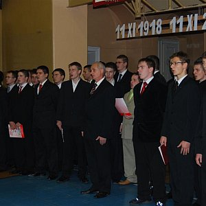 Tego roku z okazji 11 listopada uczniowie pod okiem Profesora Ryszarda Grajka przygotowali muzyczne obchody święta Niepodległości. W szkole wystąpił męski chór,  który przeprowadził uczniów przez kolejne wydarzenia z kart historii.[FOTORELACJA]953[/FOTORELACJA]