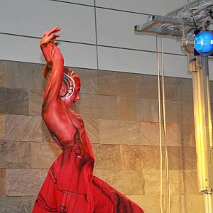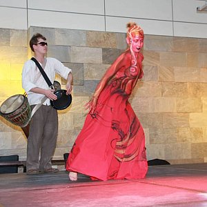Piękne tancerki ubrane w kolory, muzyka bębnów i gra świateł to wszystko złożyło się na wspaniałe widowisko, jakiego byliśmy świadkami. Artyści z grupy SAO, którzy wystąpili przed legnicką publicznością, mówią, że ich taniec jest celebracją rytmu i harmonii świata. W swej pierwotnej, afrykańskiej formie, jaką przybiera, stanowi czystą ekspresję życiowej siły. Misterne wzory na nagim ciele tancerek mają potęgować wrażenie, a harmonia linii i barwy dopełnia całości. Grupa powstała ponad 3 lata temu. Jak mówią poznali się na ulicy, oznacza to tylko tyle, że każdy z artystów ma za sobą występy w teatrach ulicznych. W Legnicy wystąpili w składzie: Anna Dudko, Tomasz oparowi cz, Aga Krajewska, Dominik Widerski (bębny), Kasia Kędzior, Kasia Stolarczyk i Tomasz Pucher.
