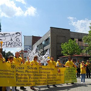 Studenci legnickich uczelni spotkali się pod Urzędem Miasta po godz. 13. Skandowali: Tak się bawi, tak się bawi PWSZ, literka P, literka W, literka R - jak PWr . Nie obyło się oczywiście bez namawiania prezydenta miasta do tego, żeby przekazał im władzę w mieście.