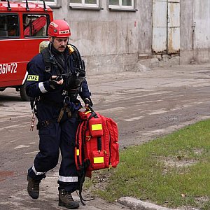 Symulowana akcja ratownicza nie należała do najłatwiejszych. Na odlewni zapaliła się instalacja acetylenowa. Ogień szybko przeszedł na drewniane palety. Pożar rozprzestrzenił się na całą halę. Stalowa konstrukcja przygniotła jednego z pracowników a sześć metrów na ziemią uwięziony został suwnicowy.