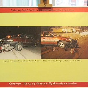"Kierowco – kieruj się Wyobraźnią i Miłością na drodze" – taką nazwę nosi wystawa przygotowana specjalnie na tę okazję, fotogramy można od dziś oglądać na I piętrze Galerii Piastów. Prezentacja zawiera wstrząsające zdjęcia wypadków drogowych, które zdarzyły się w legnicy i okolicach. Ma na celu pobudzić wyobraźnię kierowców i pokazać, do czego może doprowadzić nieodpowiedzialne i bezmyślne zachowanie na drodze. Ma też zachęcić wszystkich do bezpiecznej jazdy i do kierowania się Miłością na drodze. Już od samego początku cieszy się dużym zainteresowaniem, zwłaszcza wśród młodych ludzi, którzy są wstrząśnięci tym, co przedstawiają zdjęcia. Autorem zdjeć jest fotoreporter Polskiej Gazety Wrocławskiej Piotr Krzyżanowski.