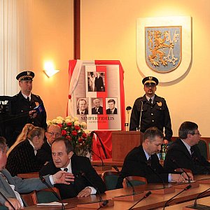 Na sali obrad legnickiej rady miejskiej było bardzo tłoczno. Poza radnymi i władzami miasta na sesję przybyli duchowni katoliccy i prawosławni, przedstawiciele służb mundurowych oraz środowisk kombatanckich. Pojawił się też lubiński poseł SLD Ryszard Zbrzyzny. Pozostali parlamentarzyści z naszego regionu w środowe popołudnie przebywali w Warszawie.[FOTORELACJA]2146[/FOTORELACJA]