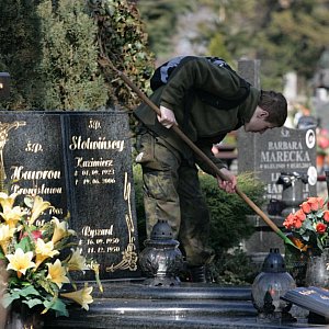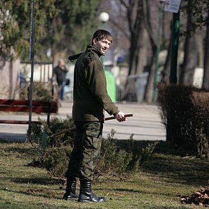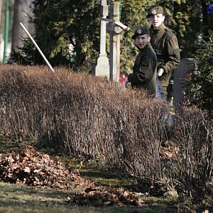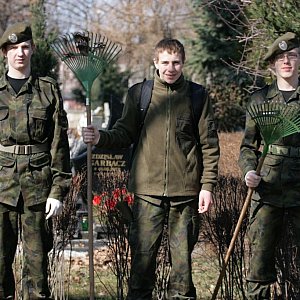 Pracy nie brakowało, młodzi ludzie sprzątali głównie zalegające na alejkach liście. Po kilku godzinach pracy mundurowi wrócili do szkoły, gdzie odbył się konkurs interdyscyplinarny ,,Mężczyzna, jaki jest – każdy widzi…”.