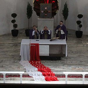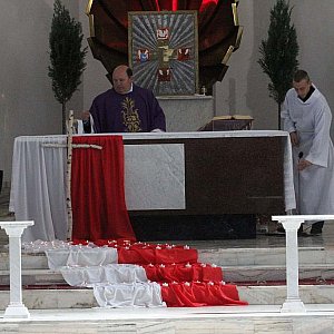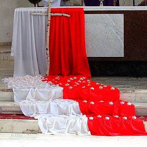 W kościele Matki Bożej Królowej Polski po mszy świętej wierni razem z księżmi złożyli znicze pod krzyżem misyjnym. Następnie modlono się za ofiary katastrofy smoleńskiej oraz oficerów zamordowanych w Katyniu.