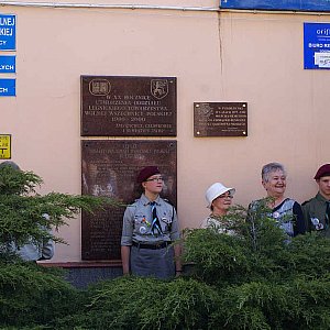 Ostatnim etapem harcerskiego spotkania po latach było odsłonięcie kolejnej tablicy, tym razem na budynku byłej Komendy Chorągwi Legnickiej ZHP przy ul. Św. Piotra 10.