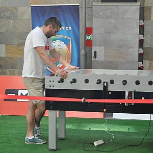 Szczepan Knap, dziennikarz sportowy prowadzący zabawę, przypomniał zawodnikom, że rozpoczynają grę w piłkarzyki według mistrzowskiej listy Euro 2012. Kolejnym etapem było podzielenie szesnastu drużyn na cztery grupy: A, B, C i D. Pierwszy, dwuminutowy mecz zagrała Polska z Grecją. Niestety przeciwnicy pokonali nas 4:3. Kolejny turniej z Czechami wygrała Rosja z wynikiem 5:1. W grupie B Holandia pokonała Danię 5:1, a Portugalia rozgromiła Niemcy 6:1. Z kolei w grupie C, Hiszpania pokonała Włochy 7:1.