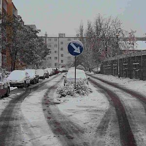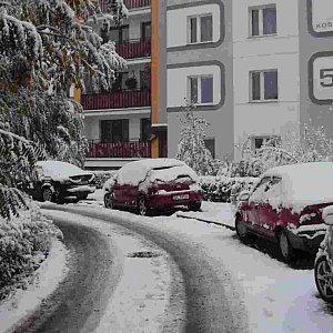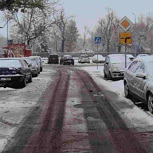 Przez całą sobotę w Legnicy padał śnieg. Temperatura wahała się w okolicach 0 stopni. Na drogach było więc bardzo ślisko.