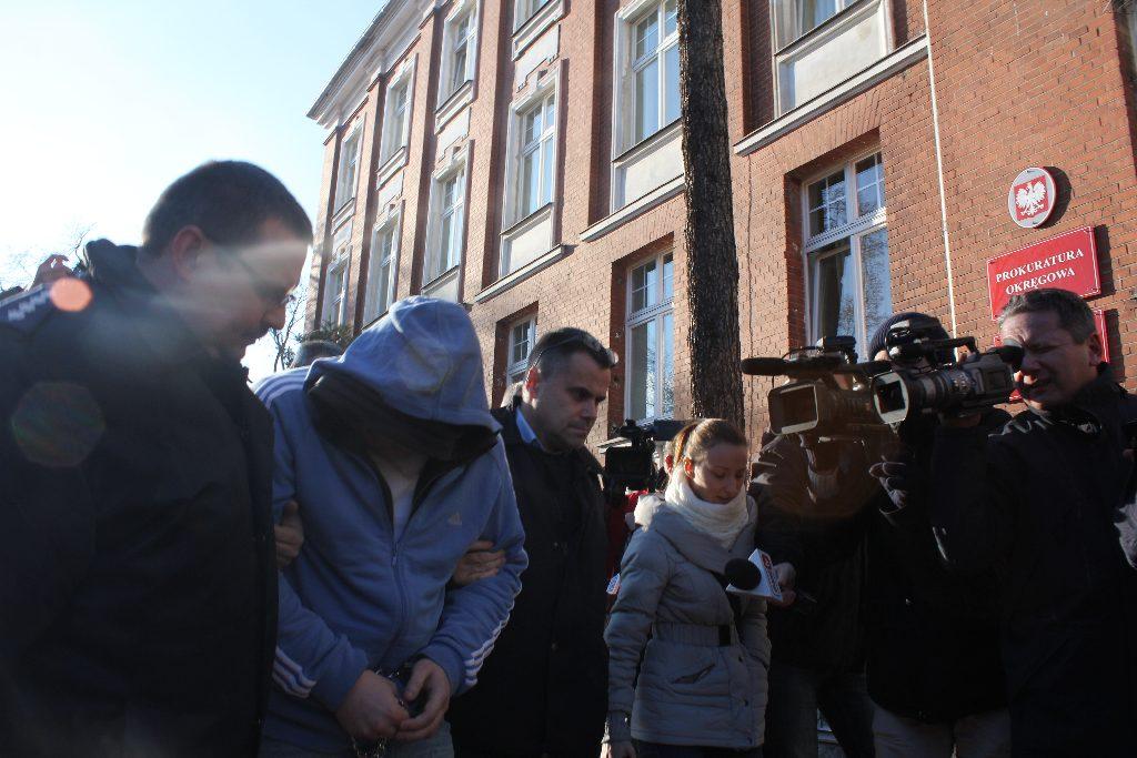 32-letni Tomasz P., który w poniedziałek w biurze przy ul. Złotoryjskiej ciężko zranił swoją byłą partnerkę życiową, został dowieziony do Prokuratury Okręgowej w Legnicy.