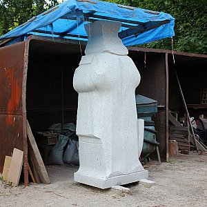 Wolne od 20 lat miejsce na cokole po Włodzimierzu Leninie nadal jest jednak wolne. I nic nie wskazuje na to, że coś się w tej materii szybko zmieni. I to mimo, że pomnik króla jest już prawie gotowy! Stoi w blaszanej wiacie na podwórku Zbigniewa Kulasa, znanego strzegomskiego rzeźbiarza.