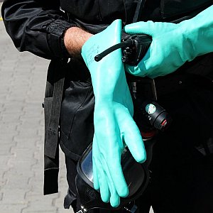 Trwa wietrzenie pomieszczeń. Podchloryn sodu jest substancją odkażającą wodę w basenach. Jest to żrący, silny utleniacz. Bezpośredni kontakt z substancją może być niebezpieczny dla ludzi.