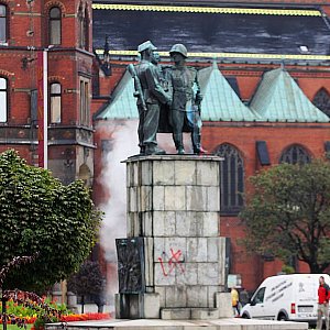 Zarzuty zdewastowania stalinowskiego monumentu usłyszeli już dwaj młodzi mężczyźni. Grozi im pięć lat odsiadki, ale w sądzie zapewne skończy się na finansowych grzywnach.