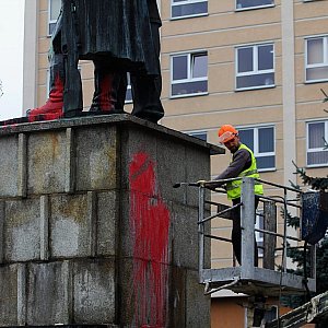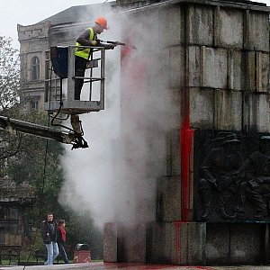 Służby miejskie rozpoczęły pucowanie Pomnika Wdzięczności dla Armii Radzieckiej, który dwa tygodnie temu został zaatakowany butelkami z czerwoną farbą.