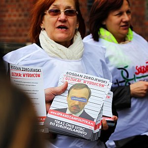 Minister grzecznie odmówił jej przyjęcia. - Przestańcie proszę w końcu kłamać! Bo, jak kłamie "Solidarność", to jest to dramat. To właśnie "Solidarność" składa obietnice bez pokrycia, wprowadzając społeczeństwo w błąd! Ja nigdy nie obiecywałem swoim wyborcom referendum w sprawie wieku emerytalnego i pozostawienia go na dotychczasowym poziomie. Niestety "Solidarność" angażuje się w działalność polityczną służącą jednej konkretnej, opozycyjnej partii - mówił do związkowców.
