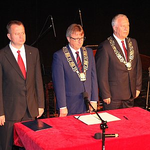 Na Scenie im. Ludwika Gadzickiego pojawili się też tegoroczni laureaci odznaczeń "Zasłużony dla Legnicy". W blasku fleszu odebrali je założycielka i instruktorka zespołu "Złote Dzieci" Monika Kuligowska, naczelna pielęgniarka w Wojewódzkim Szpitalu Specjalistycznym Beata Łabowicz, emerytowany dyrektor wydziału oświaty w Urzędzie Miasta Tadeusz Spendowski, adwokat i prezes Towarzystwa Miłośników Lwowa i Kresów Wschodnich Kazimierz Bielecki oraz przewodniczący rady nadzorczej Legnickiej Spółdzielni Mieszkaniowej Władysław Szudrowicz.[FOTORELACJA]8299[/FOTORELACJA]