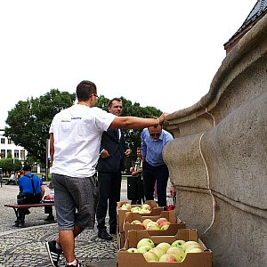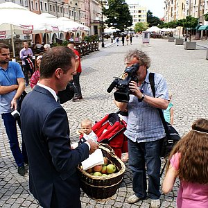 - W obliczu rosyjskich sankcji solidaryzujemy się z polskimi sadownikami namawiając legniczan do jedzenia jabłek. Przy okazji promujemy zdrowy styl odżywiania - mówił Jarosław Rabczenko, który przy okazji promował również swoją osobę w kontekście listopadowych wyborów samorządowych.