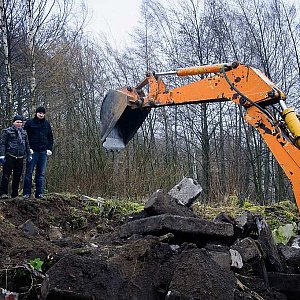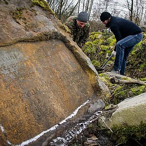 - Pod koniec ubiegłego roku na przełomie listopada i grudnia z ziemi w lasku Złotoryjskim wydobyliśmy sześć kamieni nagrobnych o łącznej wadze około 10 ton, wywiezionych po 1945 roku z Cmentarza Komunalnego przy ul. Wrocławskiej, zanim został on zrównany z ziemią - mówi Bartłomiej Rodak z Fundacji Historycznej Liegnitz.pl.