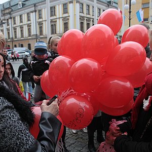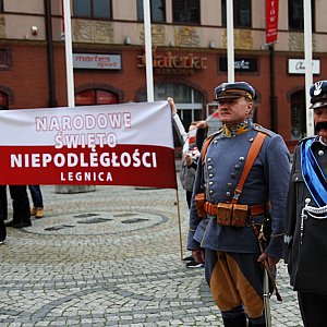 Nim jednak balony pofrunęły w niebo, przez miasto przeszedł Marsz Niepodległości. Na placu przed kościołem Mariackim legniczanie uzbrojeni w białe i czerwone kartki utworzyli „żywą flagę” w kształcie Polski.