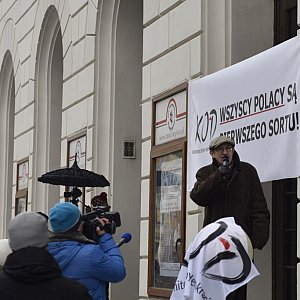 Gdy przeciwnicy PiS przemawiali, prawica buczała i gwizdała. Zwolennicy rządu zadanie mieli utrudnione, bo KOD wystawił na teatralnych parapetach głośniki i zagłuszał kontrmanifestację muzyką. Wśród nich na próżno było szukać znanych lokalnych polityków.