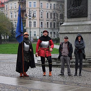 Przed inscenizacją na Placu Orląt Lwowskich złożono kwiaty i zapalono znicze pod pomnikiem 2000 lat chrześcijaństwa i 760 rocznicy Bitwy Legnickiej 1241.