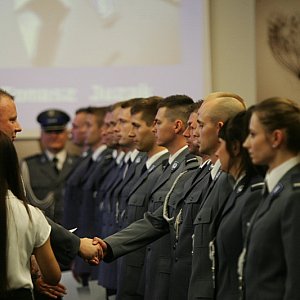 Piątkowa akademia była już tradycyjnie okazją do uhonorowania policjantów, którzy w minionych dwunastu miesiącach wykazali się odwagą i poświęceniem. Specjalne nagrody od prezydenta Tadeusza Krzakowskiego otrzymali Marcin Feber, Piotr Flejterski, Marcelina Rudnicka i Radosław Kupiec.