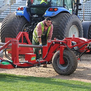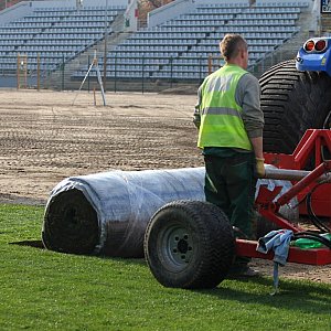 Inwestycja na stadionie wkracza do końcową fazę. Firma Bud-Ziem z Pszenna rozpoczęła kłaść murawę. Prace potrwają przynajmniej trzy dni.