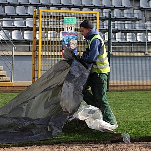 W październiku wykonawca zdjął z boiska starą, mocno wyeksploatowaną murawę. Następnie położona została instalacja cieplna. Stara trawa pierwotnie miała zostać przeniesiona na boisko treningowe Miedzi przy ul. Świerkowej. Okazało się jednak, że jest zbyt słabo ukorzeniona.