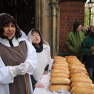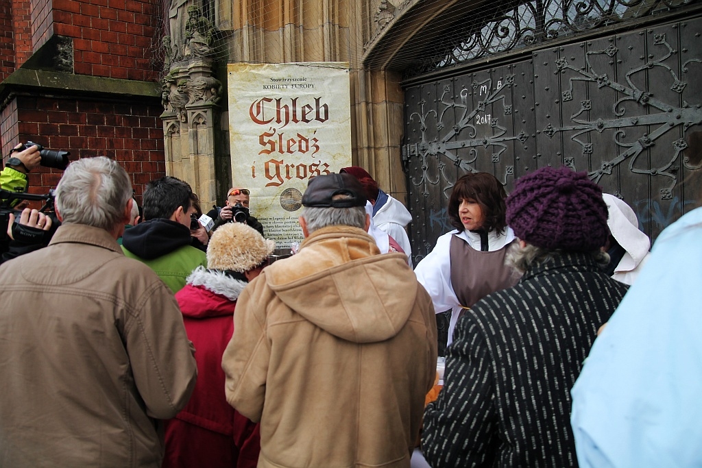 Od piętnastu lat tradycję tę kultywują członkinie Stowarzyszenia „Kobiety Europy”. W piątek pod katedrą rozdały 150 bochenków chleba i 56 kg śledzi oraz 150 groszówek.