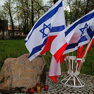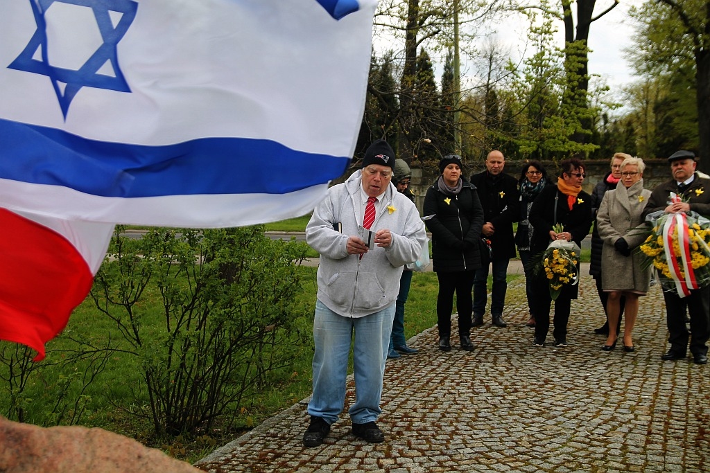 W 74. rocznicę wybuchu powstania pod obeliskiem Pamięci Bojowników Getta Warszawskiego zapłonęły znicze. Złożono też kwiaty.