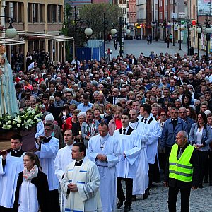 W sobotniej procesji z figurą Matki Bożej Fatimskiej z kościoła św. Jacka do katedry przeszło prawie 1, 5 tys. osób. Podczas mszy, której przewodniczył biskup Zbigniew Kiernikowski, odmówiono "akt oddania Legnicy Niepokalanemu Sercu Maryi".[FOTORELACJA]12823[/FOTORELACJA]