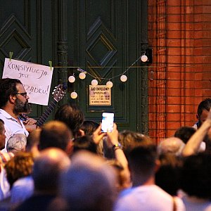 Tym razem na zapaleniu tradycyjnych już zniczy przed sądowymi drzwiami się nie skończyło. Aktorzy Teatru Modrzejewskiej czytali fragmenty Konstytucji RP oraz wiersze.