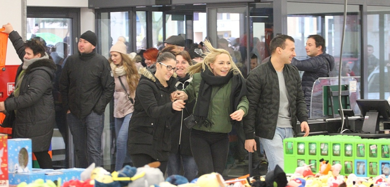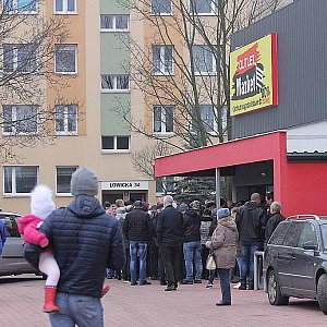 Tłum klientów z niecierpliwością wyczekiwał w sobotni poranek na otwarcie Outlet Market na legnickich Piekarach. Sklep oferuje kilka tysięcy produktów w cenach nawet o 80 proc. niższych niż gdzie indziej.