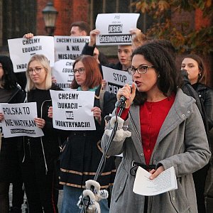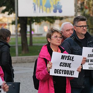 Manifestacja pod hasłem „Stop ciemnocie” odbyła się w środę w legnickim rynku. Jej uczestnicy protestowali przeciwko wprowadzeniu przez Sejm restrykcyjnej nowelizacji kodeksu karnego z zapisami uderzającymi w edukację seksualną.