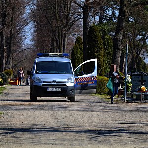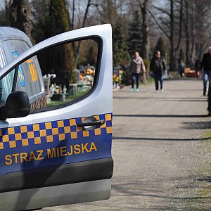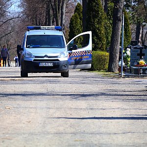 Czy radiowóz straży miejskiej nie powinien zaparkować przed bramą nekropolii ?