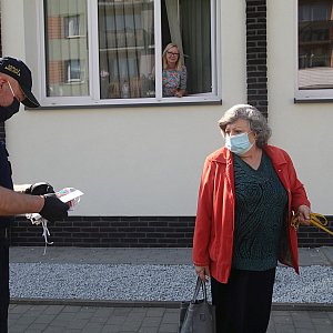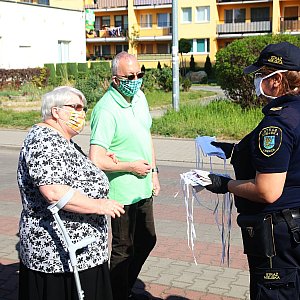 We wtorek (28 kwietnia) strażnicy miejscy rozdawali seniorom oraz wszystkim potrzebującym osobom maseczki uszyte przez panie i panów z grupy MASKA DLA SENIORA - Legnica i okolice. W środę kolejny dzień akcji.