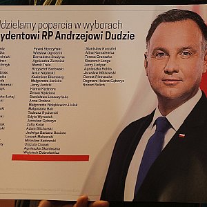 - Andrzej Duda dał się poznać jako prezydent, który chce Polski nowoczesnej, otwartej na świat, ale jednocześnie szanującej tradycje, z których wyrastamy, czerpiącej z nich. Jest prezydentem, który wiele przebywa wśród ludzi w całej Polsce. Żaden z dotychczasowych w trakcie sprawowania urzędu odbyłby tyle spotkań w różnych zakątkach Polski. Jest prezydentem, który jest blisko spraw dotykających na co dzień większość Polaków, a przy tym pełniąc swój urząd, wywodząc się z konkretnego środowiska politycznego, szanuje wszystkich, także swoich przeciwników politycznych i myślę, że to jest wystarczająca rekomendacja żeby wybrać go 28 czerwca – wyliczał zalety Andrzeja Dudy namawiając jednocześnie go oddania głosu na obecnego prezydenta.