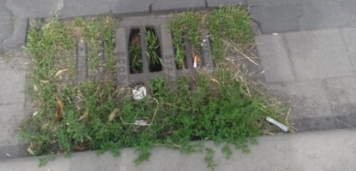 Zapchane, zarośnięte trawą, nieczyszczone studzienki kanalizacyjne to jedna z przyczyn zalewania ulicy po obfitych deszczach. Mieszkaniec ulicy Neptuna podczas spaceru natknął się na taką zaniedbaną studzienkę i pyta, kto to wyczyści.