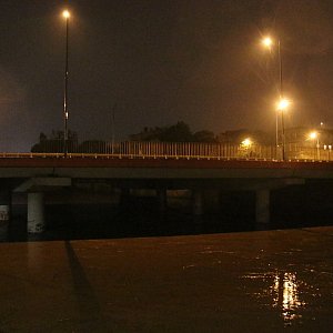 Na moście na Jaworzyńskiej wodowskaz na Kaczawie pokazuje 238 cm, do stanu alarmowego, który ogłaszany jest przy poziomie 300 cm, brakuje więc 62 cm. Na Czarnej Wodzie w okolicy Kąpieliska Kormoran stan wynosi 257 cm i stan alarmowy przekroczony jest o 7 cm.