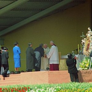 W legnickiej mszy uczestniczyli wierni nie tylko z Polski. Na lotnisku stawili się liczni pielgrzymi z Niemec i Czech. Podczas mszy świętej Jan Paweł II ukoronował wizerunek królowej trzech narodów Matki Boskiej z Krzeszowa – obraz otaczany czcią od XIII wieku.