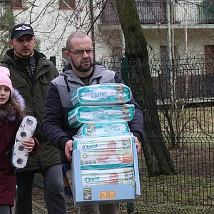 Na miejscu zbiórki pojawiają się całe rodziny, polskie i ukraińskie. Michał przyjechał z rodziną z Ukrainy osiem miesięcy temu. Zostawił za wschodnią granicą ojca i mamę, która pracuje w domu dziecka i dwóch braci z rodzinami. Dziś ze swoimi dziećmi przywiózł pełen samochód.