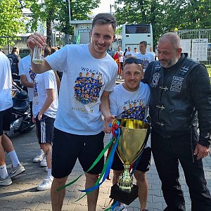 Wszystko pięknie, gratulacje awansu, tylko śmiesznie wyszedł na zdjęciach od 17-20 ten pajac w niebieskiej koszulce i w ciemnych okularach... tak podniecony jakby do pucharu chciał wejść...