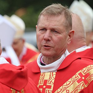 Tadeusz Lityński, biskup zielonogórsko - gorzowski przewodniczył mszy świętej z okazji 30. rocznicy utworzenia Diecezji Legnickiej, 25 rocznicy wizyty Jana Pawła II w Legnicy i koronacji obrazu Matki Bożej Łaskawej z Krzeszowa.