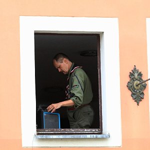 W wolnym tłumaczeniu: "Rok temu kłamałem. Nie zrobiłem nic aby tablica zaistniała w lepszym miejscu, na zamku lub przy nim. Jak zobaczyłem, że inni coś robią, to naprędce zamówiłem duplikat tablicy." Nic dziwnego, że na tym wydarzeniu nie ma ani jednego harcerskiego munduru.