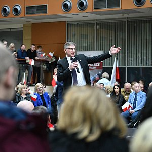 -Przeciwko nam stoją potężne instytucje. Stoją potężne media. Bardzo duża część zagranicy, spora część niestety biznesu, chociaż akurat my działaliśmy na rzecz polskiego biznesu i w związku z tym my nie mamy takiego dostępu do środków, jak nasi przeciwnicy polityczni. Teraz mam w pamięci nasz marsz z 11 stycznia w środku zimy, tygodnia roboczego. Wspaniała frekwencja, ale bardzo środków nas to kosztowało, aby płacić za autobusy, pomóc w organizacji tego marszu. Chcemy zorganizować następny. Będzie wiosną pewnie już po wyborach. Bardzo proszę, żeby każdy wpłacał, ile kto może, będą specjalne konta, nie na partię, ale właśnie na przykład na marsz. Było nas 200 – 300 tysięcy. Oni się przerazili tego marszu – przekonywał Mateusz Morawiecki.
